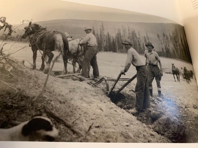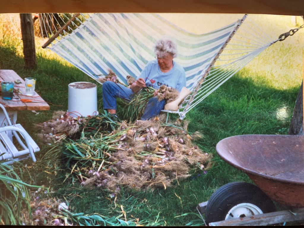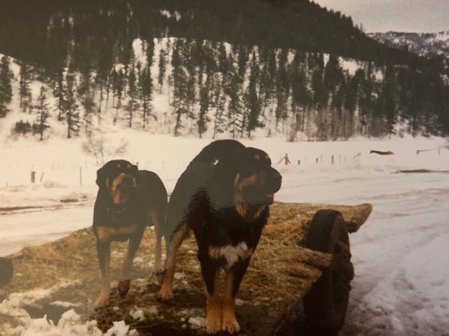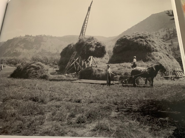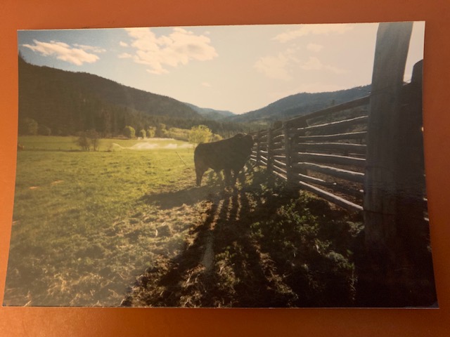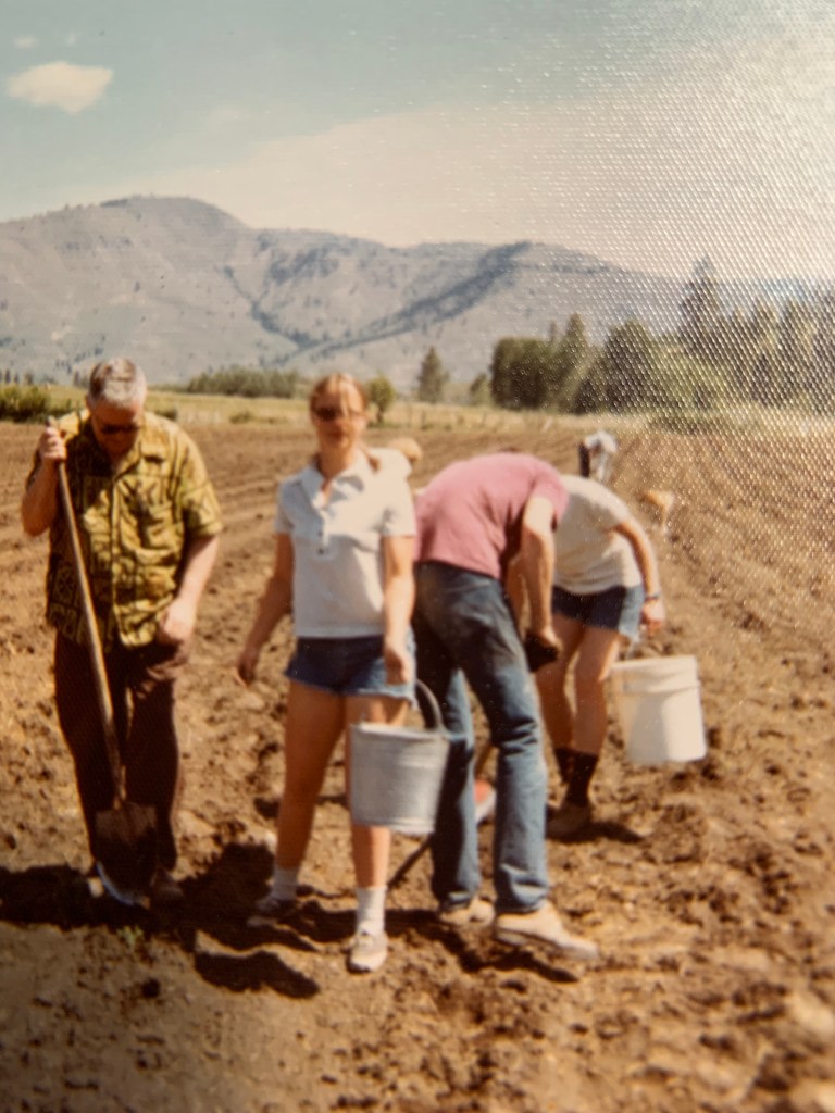 We branded this way a few years before we bought an electric brand – our brand was an inverted F with a crescent above itWe had a hay Derrick in our feedlot when we bought the ranch in 1972.We had ditch building equipment on the ranch since canal of the lower ditch company ran through our ranch bringing water from Gold creek to Mills FlatTurning out the cattle to graze May 1st every year for 30 yearsMillie and Marley guarding the hay trailer Lone bull in the lower feed lotCows munching in the upper feed lotKids collecting eggsMy Mother Lucy sorting garlicThe Inspiration for our AspirationsThe pentagon silos on Mills FlatThe 2014 burned them Part of ur corrals & calving shedRanch Squeeze chuteOur first planting in 1974More old corrals